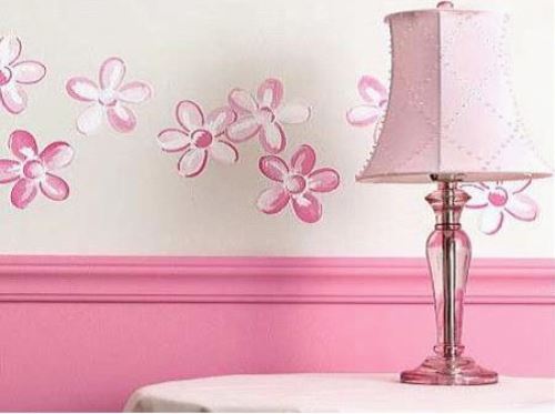 这款主打粉色,喜欢粉色的你,可以选择这款壁饰。深浅不一的粉色花朵图案,有着甜蜜、浪漫的感觉,能为家带来春风般的柔和享受。沿着墙壁画开,感觉花瓣在随风飘动着。与台灯一起,装饰着这一个角落。