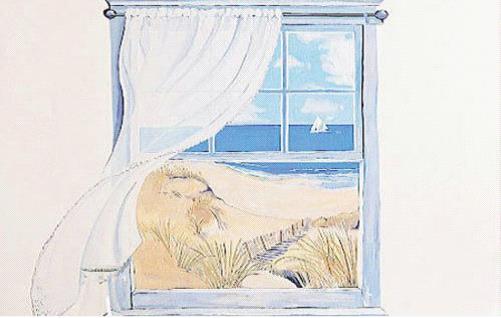 想要一扇能看到美丽风景的窗户吗?你看,蓝色的天、蓝色的海还有美丽的白云和帆船,在飘逸的窗帘下吹来了一阵清爽的风。这样一款自然又逼真的壁饰,能给家增添无穷的魅力。一款清新的手绘墙画就这么出现了,阳台处或者卧室里拥有这么一副手绘墙画效果还是不错的。