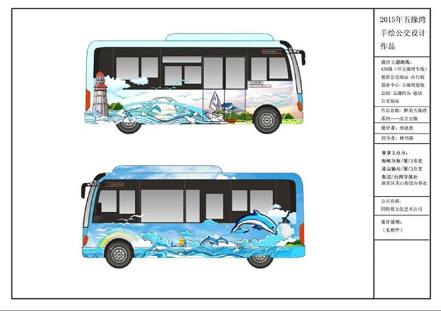 在车身题材的创作上,厦门的蓝天、海水、鼓浪屿、美食、建筑、动物等,第一次相约车身,熊猫公交、音乐公交、海豚公交等主题公交,第一次走上公交车。