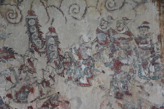 专家表示,第一铺记录的是“五猖神”等各色人物共100多位,旗帜上有“敕封水龙庙”、“三军司令”等字样;第二、三铺主要绘有盘龙、麒麟等神兽;第四铺人物最多、保存最为完整,具有鲜明明代服饰特色的人物500多位,旗帜上写有“风调雨顺”、“五谷丰登”、“三军号令”、“敕封水龙庙”等字样;第五铺人物达400多位,仪仗与第四铺类似。