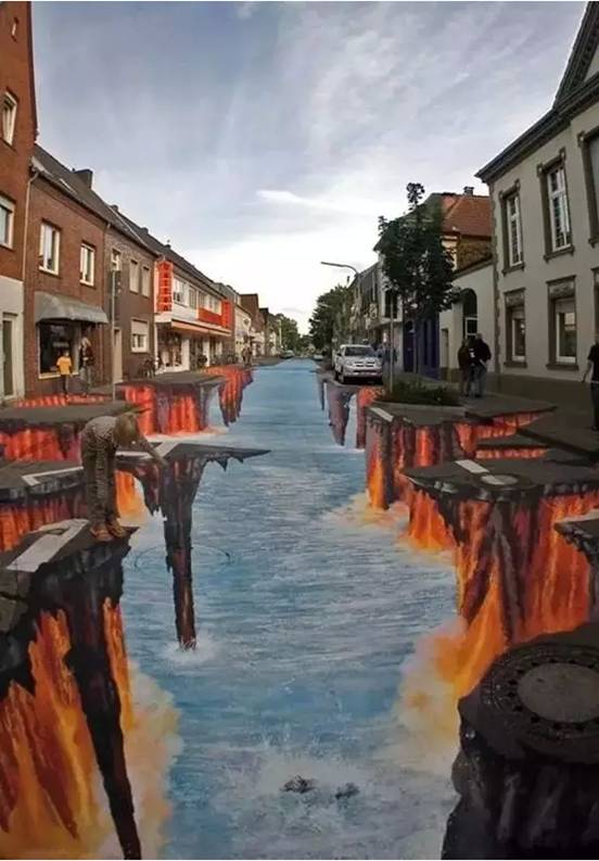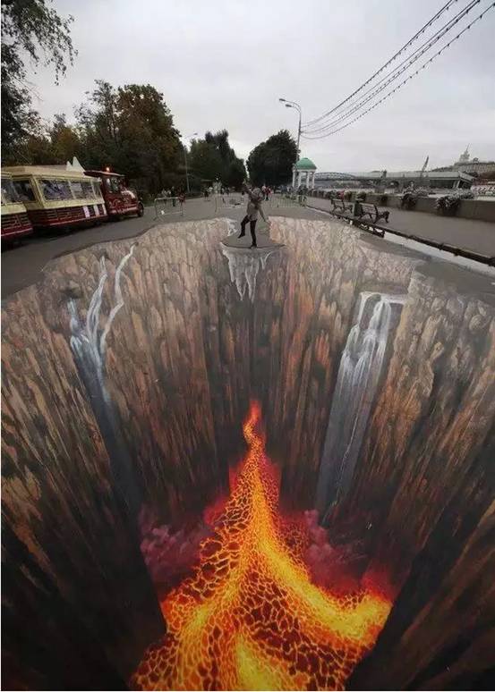 导读:不要那么害怕,这些都是画在地面上的3D涂鸦,只不过,画的太过逼真,如果不小心走上去,还真会吓那么一跳。不信,你来看看。。