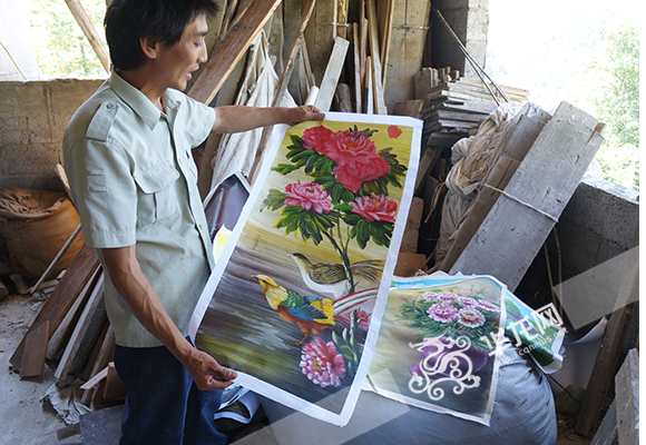 “画了大大小小的作品上百幅,可知道的人很少,这样的人才埋没了太可惜了。”好友刘忠培为了把曹家荣宣传出去,把从未出门画过画的曹家荣请到自己家里,画了3幅墙绘,而且效果不错。