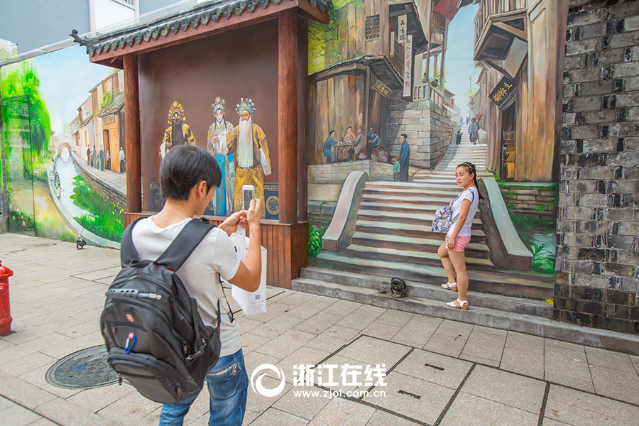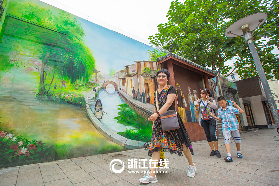 都锦生丝织、张同泰药店等杭州特色都展示在立体墙绘上。