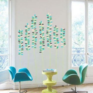 看惯了冰冷的墙砖和影视墙,也许你会对这种一成不变的装饰感到乏味。那如何让家居也能感受鸟语花香,看艳阳高照,和小熊维尼游戏等等呢?这已不是难题了, 近年来流行的手绘墙贴,可以根据家居的装饰风格、色彩搭配和个人的喜好,在墙面上绘出的生动画面,犹如一幅幅流动的风景定格在墙壁上。它,不但具有很好的 装饰效果,独有的画面也能体现每个人的不同时尚品位。把绿色的植物贴在墙面上,给家带来了清新自然的气息。